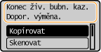 Když je v kazetě válce málo toneru, zobrazí stroj hlášení. Pokud situaci nevyřešíte a budete pokračovat v tisku, může se zhoršit kvalita. Množství zbývajícího toneru v kazetách válce můžete zkontrolovat na displeji (