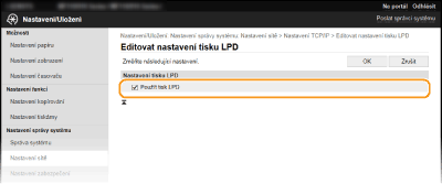 Políčko zaškrtněte, chcete-li tisknout pomocí protokolu LPD. Pokud tisk LPD nepoužíváte, zaškrtnutí políčka zrušte. [Použít tisk RAW]