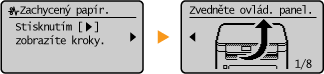 zobrazíte jednoduchá řešení. Pokud potřebujete odstranit zachycený papír a postupy na displeji jsou obtížně pochopitelné, podívejte se do následujících částí.