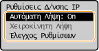Ελέγξτε ότι η ρύθμιση <Αυτ. IP> έχει οριστεί σε <On>.