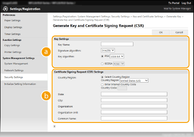 [Key and Certificate Settings].