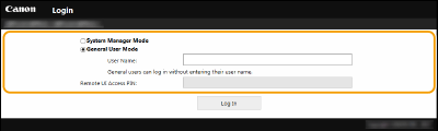 אם [Remote UI Access PIN] מוגדר, הזן את ה-PIN.