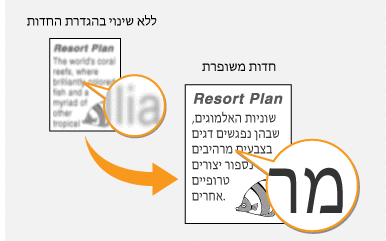 ניתן לכוונן את החדות של התמונה המצולמת. הגבר את החדות כדי לחדד טקסט וקווים מטושטשים, או הפחת את החדות כדי לשפר את המראה של תמונות במגזינים.