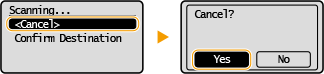 אם ברצונך לבטל שליחה של מסמכים מיד לאחר תחילת הסריקה, בחר <Cancel> בתצוגה או לחץ על