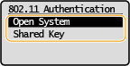אם בנתב האלחוטי מוגדר אימות באמצעות מפתח משותף, חיבור ל-LAN אלחוטי יוביל לשגיאת אימות במכשיר. במקרה כזה, המכשיר משנה באופן אוטומטי את ההגדרה ל-<Shared Key> ומבצע ניסיון נוסף להתחבר.