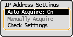 בחר <Auto Acquire> ולאחר מכן הגדר הן את <Select Protocol> והן את <Auto IP> כ-<Off>.