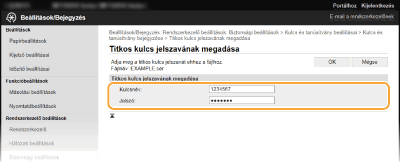 [Jelszó] Adjon meg egy alfanumerikus karakterekből álló jelszót a bejegyzendő fájlhoz tartozó privát kulcskészlet számára.