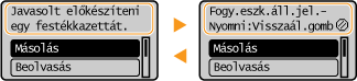 Amikor hiba lép fel, bizonyos esetekben a hiba elhárítására vonatkozó útmutatás jelenik meg a kijelzőn. A probléma megoldásához kövesse a kijelzőn látható utasításokat. Az alábbi ábrán például a papírelakadáskor megjelenő képernyő látható.