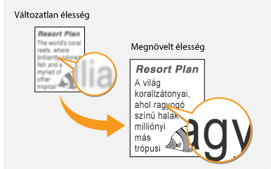 Beállíthatja a másolt kép élességét. Elmosódott szöveg és vonalak élesítése céljából növelhető, az újságfényképek megjelenésének javítása érdekében pedig csökkenthető az élesség.