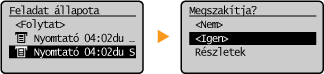 Megszakítás a Távoli felhasználói felület segítségévelA nyomtatás megszakítható a Távoli felhasználói felület [Feladat állapota] oldalán: A nyomtatott dokumentumok aktuális állapotának ellenőrzése
