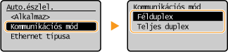 Felváltva küldi és fogadja a kommunikációs adatokat. Akkor válassza, ha a készülék félduplex módon kommunikáló hálózati eszközhöz van csatlakoztatva. <Teljes duplex>