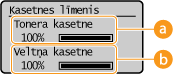Parādītais tonera vai veltņa kasetnē atlikušā tonera daudzums ir orientējošs un var atšķirties no patiesā daudzuma.