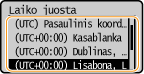 Prieš nustatydami dabartinę datą ir laiką, nustatykite <Laiko juosta>. Jeigu <Laiko juosta> parametras vėliau pakeičiamas, esama data ir laikas taip pat atitinkamai pakeičiami.