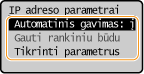 Patikrinkite, ar <Automatinis IP> nustatyta kaip <Įjungta>.