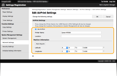 [AirPrint Settings]