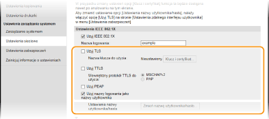 Konfiguracja ustawień uwierzytelniania zgodnego z IEEE 802.1X