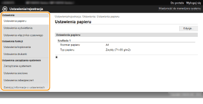 Za pomocą Zdalnego interfejsu użytkownika można zmieniać różne ustawienia urządzenia. Większość ustawień można konfigurować także w urządzeniu, ale niektóre z nich mogą zostać zmienione tylko za pomocą Zdalnego interfejsu użytkownika. W tej części opisano podstawowy przebieg procedury modyfikacji ustawień urządzenia przy użyciu Zdalnego interfejsu użytkownika.