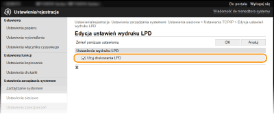 Zaznaczenie tego pola wyboru umożliwia wydruk za pomocą protokołu LPD. Jeśli drukowanie za pomocą protokołu LPD nie jest używane, należy usunąć zaznaczenie tego pola wyboru. [Użyj wydruku RAW]