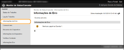 Quando ocorre um erro, esta página é apresentada clicando na mensagem que aparece em [Informações de Erro] na página do portal (página principal).