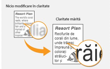 Puteţi ajusta claritatea imaginii copiate. Creşteţi claritatea pentru a face textul şi liniile mai clare sau scădeţi claritatea pentru a îmbunătăţi copierea fotografiilor din reviste.