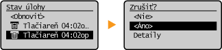 Zrušenie z Remote UI (Vzdialené UR)Tlač môžete zrušiť zo stránky [Job Status] na Remote UI (Vzdialené UR): Kontrola aktuálneho stavu tlačených dokumentov