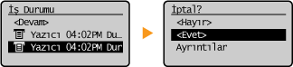 veya <Durum Denetleme> öğesini kullanarak yazdırmayı iptal edin.