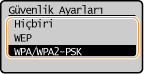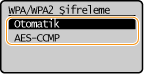 Makineyi, kablosuz yönlendiricinin ayarıyla eşleşmesi için otomatik olarak AES-CCMP veya TKIP seçecek şekilde ayarlar.