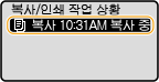 <복사/인쇄 작업 상황> 화면에서 상태를 확인할 문서를 선택하고