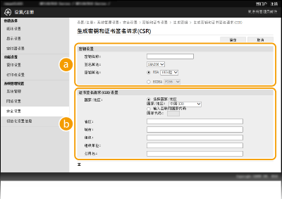 由于本机上生成的证书没有 CA 签名,因此根据与之通信的设备,可能会发生通信错误。要让证书颁发机构颁发带 CA 签名的证书,需要获得 CSR(证书签名请求)的数据,管理员可以从远程用户界面生成此数据。颁发证书时,会将其注册在密钥中,并生成 CSR。