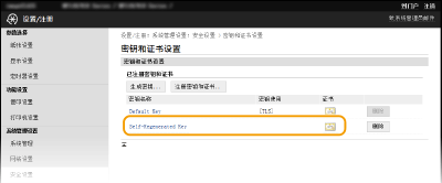 如果密钥和证书当前用于某种用途,例如当在 [密钥使用] 下显示“[TLS]”时,无法删除密钥和证书。在这种情况下,请禁用此功能或更换密钥和证书,然后再进行删除。