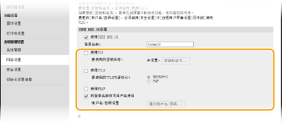 1 | 选择 [使用TLS] 复选框,然后单击 [密钥和证书]。 |