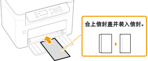 将信封 Monarch、No. 10 (COM10)、DL 或 C5 纵向(短边朝向本机)装入,非粘合面(正面)向上。不能在信封的背面打印。