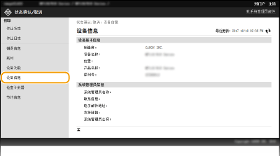 显示本机和系统管理员的相关信息。此信息在 [设置/注册] 页面上的 [系统管理] 中设置。