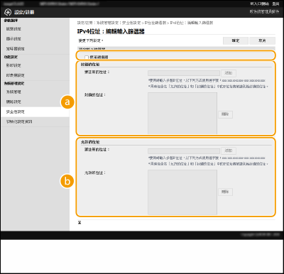 在 [要註冊的位址] 文字框中輸入 IP 位址(或 IP 位址的範圍),然後按一下 [添加]。