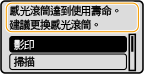 所顯示的訊息依感光滾筒剩餘的碳粉量而定。視所顯示的訊息而定,請準備新感光滾筒(