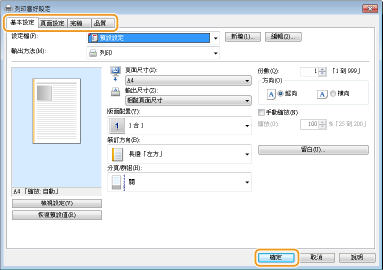 根據需求指定列印設定,然後按一下 [確定]。