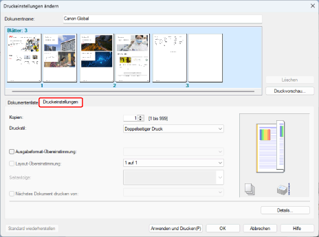 Dies ermöglicht Ihnen, die Einstellungen zu vereinheitlichen, wenn Sie die Druckeinstellungen mehrerer Dateien mit unterschiedlichen Seitengrößen oder Layouts bearbeiten.