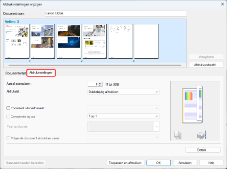 Met Canon PageComposer kunt u de afdrukinstellingen voor een bestand wijzigen.