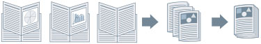 Podczas tworzenia broszury z dokumentu składającego się z dużej liczby stron dokument ten można podzielić na kilka zestawów i wydrukować.