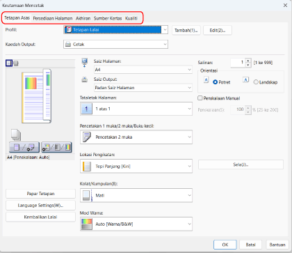Ini menerangkan prosedur asas untuk mengkonfigurasi pencetakan dengan tetapan pemacu pencetak.