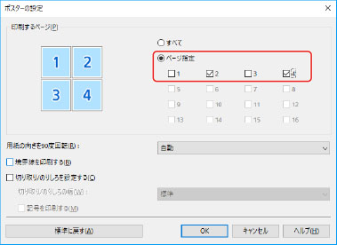 [ポスターの設定]ダイアログボックス >[用紙の向きを90度回転]>[する]または[自動]を選択した場合