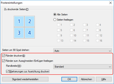 Drucken eines großen Posters über mehrere Seiten hinweg