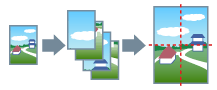 Vous pouvez agrandir les données d'une page et les imprimer sur plusieurs feuilles. L'ensemble des feuilles sorties mises les unes à côté des autres forme une impression grand format semblable à une affiche.