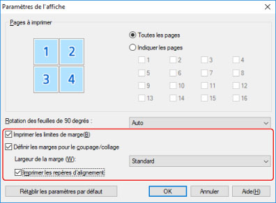 Paramètres détaillés dans la boîte de dialogue [Paramètres de l'affiche]