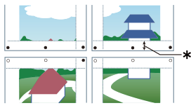 Les exemples ci-dessous illustrent des configurations d'impression en mode poster et le résultat obtenu. Les exemples de configuration illustrés sont combinés à l'état de configuration dans la boîte de dialogue [Paramètres de l'affiche], le cas échéant.