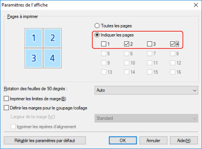 Pour définir des éléments tels que la plage de pages à imprimer, l'impression des lignes de bordure, procédez comme suit.