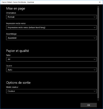 Si vous imprimez depuis une application du Store, configurez-la de manière à afficher l'écran des paramètres d'impression du pilote.