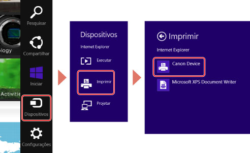 Para imprimir a partir de um Aplicativo da Loja no Windows 8.1/Server 2012 R2