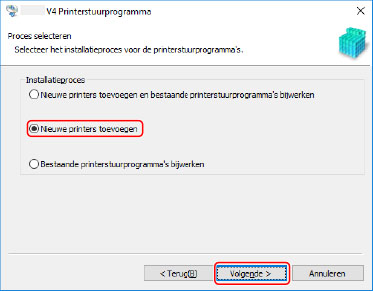 [Nieuwe printers toevoegen en bestaande printerstuurprogramma's bijwerken]: Selecteer dit als u reeds geïnstalleerde stuurprogramma's wilt updaten terwijl u een nieuw stuurprogramma toevoegt.
