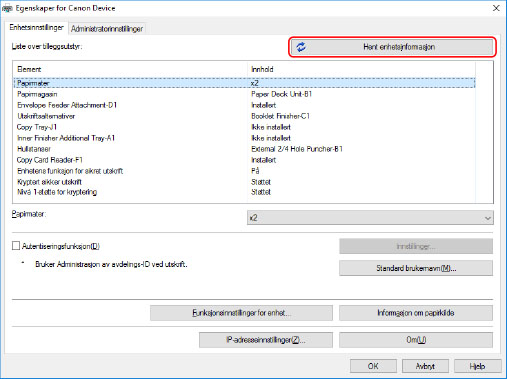 Klikk på [Hent enhetsinformasjon].